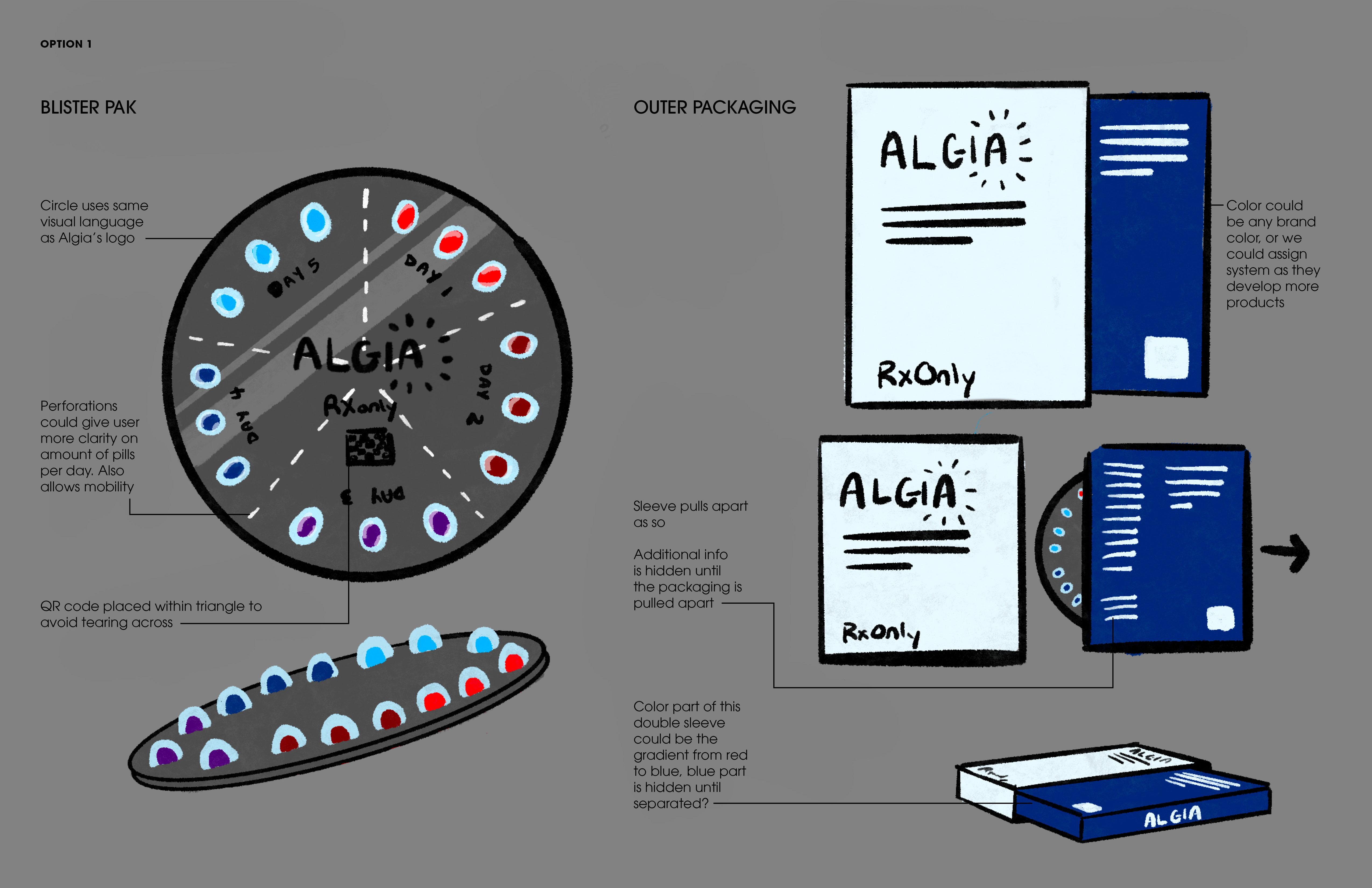 To begin their trials, Algia Pharma partnered with Herzog & Schindler to develop a logo, branding, packaging, and 3D rendering for their Algia Pak.