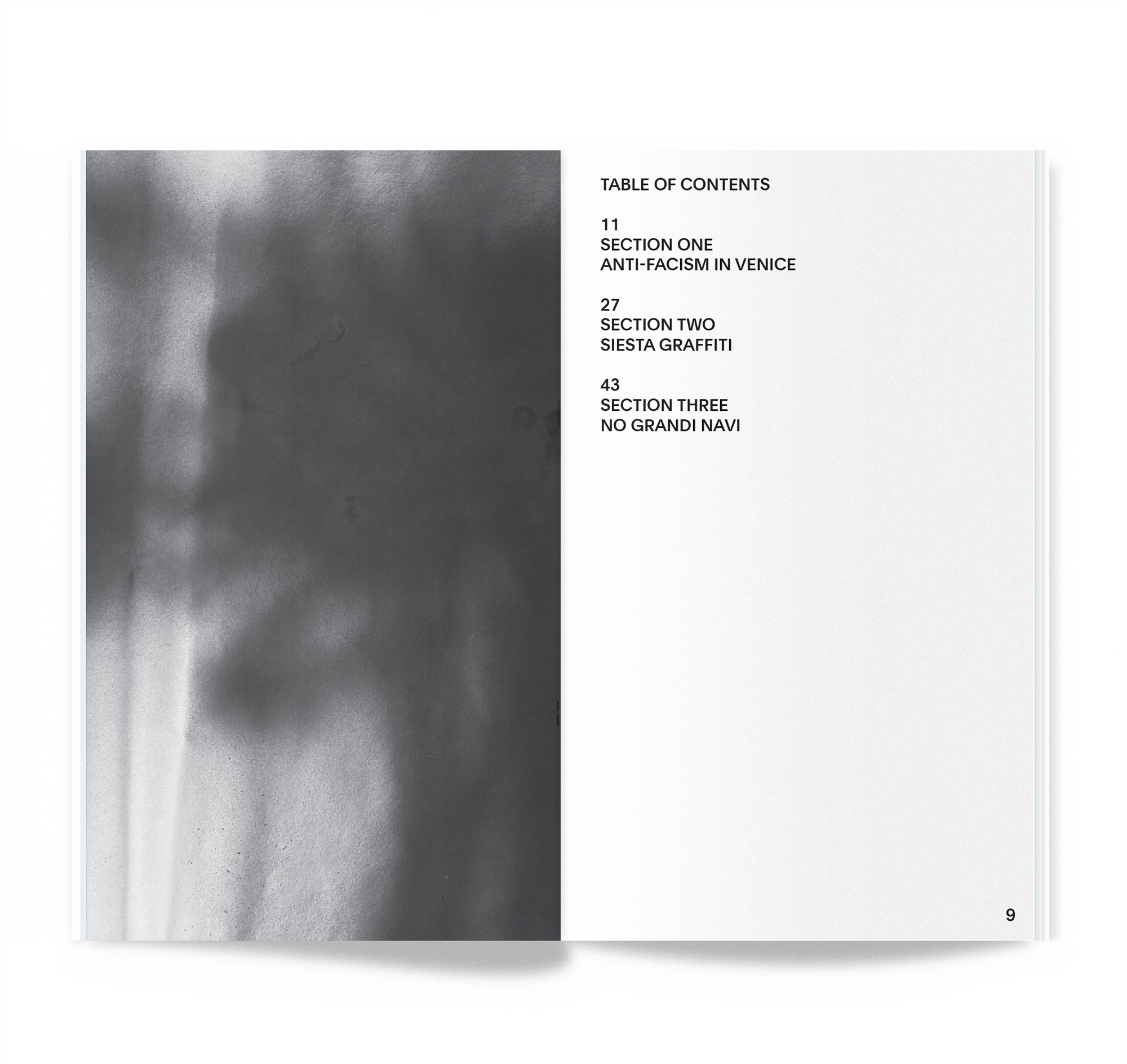 Graffenezia is the book I designed during my semester abroad in Venice, Italy. A sort of catalogue, Graffenezia documents graffiti found throughout the island of Venice, and categorizes this art into three sections: Anti-Facism, Siesta, and No Grandi Navi. The coordinates of all graffiti images can be found in the back of each section. The cover art is scanned images of my own spray painted work.
